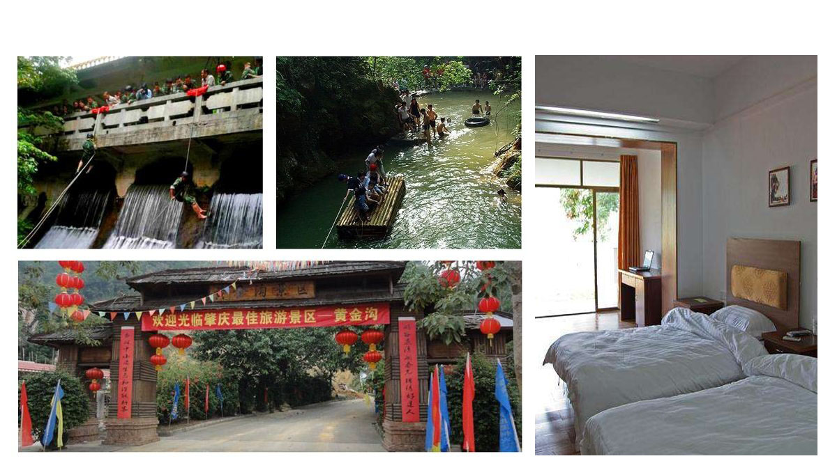 黄金沟生态旅游风景区位于鼎湖山风景区的东侧,九坑河主干流的源头,因当地山民曾在此采沙淘金而得名“黄金沟”。距鼎湖区凤凰镇8公里,距肇庆28公里,西连鼎湖山,东邻葫芦山,北接贞山。与鼎湖山风景区一脉相连,气候温和,古木葱茏,鸟语花香,动植物种类繁多。拥有山林面积260平方公里,水库面积6.7平方公里。2000多种植物,向人们展示大自然的奥秘。负离子含量极高的空气,沁人心脾。